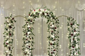 I provide artificial flower arrangements and flower runner for top table and backdrop. Various colours available.