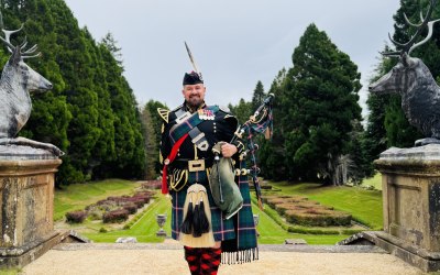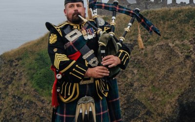 Professional, ex-military bagpiper to hire for all occasions.