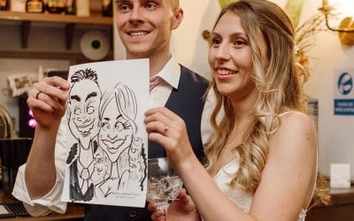 I am one of the top caricaturists in the United Kingdom the and overall winner of the prestigious Caricon International Caricature Convention 2017 and more recently winner of Hitched Entertainer of the Year 2022 &2023. I am able to produce one high-quality caricature every 3-4 minutes that many clients keep forever as a souvenir of their day.