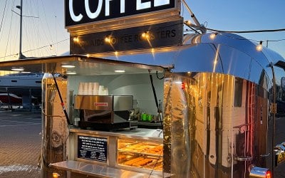 Mermaids Coffee Roasters mobile airstream coffee shop for hire in South UK. Available for short and long term events.
