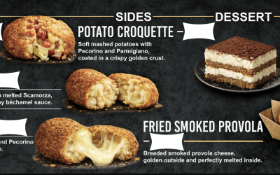 Our signature dishes include the famous Frittatina di Pasta, available in Amatriciana, Four Cheese and Mushroom, made with bucatini pasta, parmesan, pecorino and smoked provola. We also serve crispy potato croquettes with smoked provola and classic homemade tiramisù.