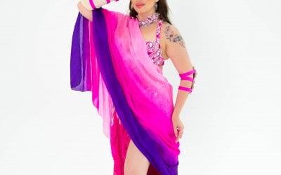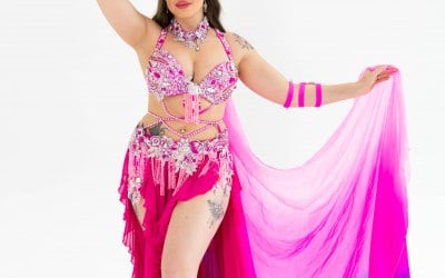 She is also a multi-award-winning belly dancer, having won competitions in both the UK and abroad, recognised for her expressive style, musicality, and captivating stage presence.
