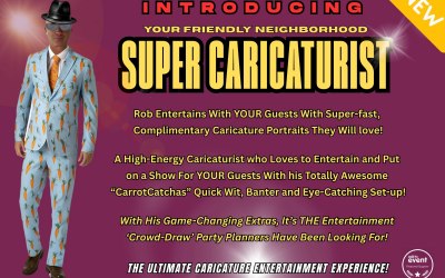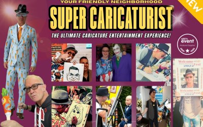The Super Caricaturist Offers a Unique, Show-Style Portrait Experience For YOUR Guests, That Combines Quick-Draw Caricatures and an Unforgettable Caricature Entertainment Show!